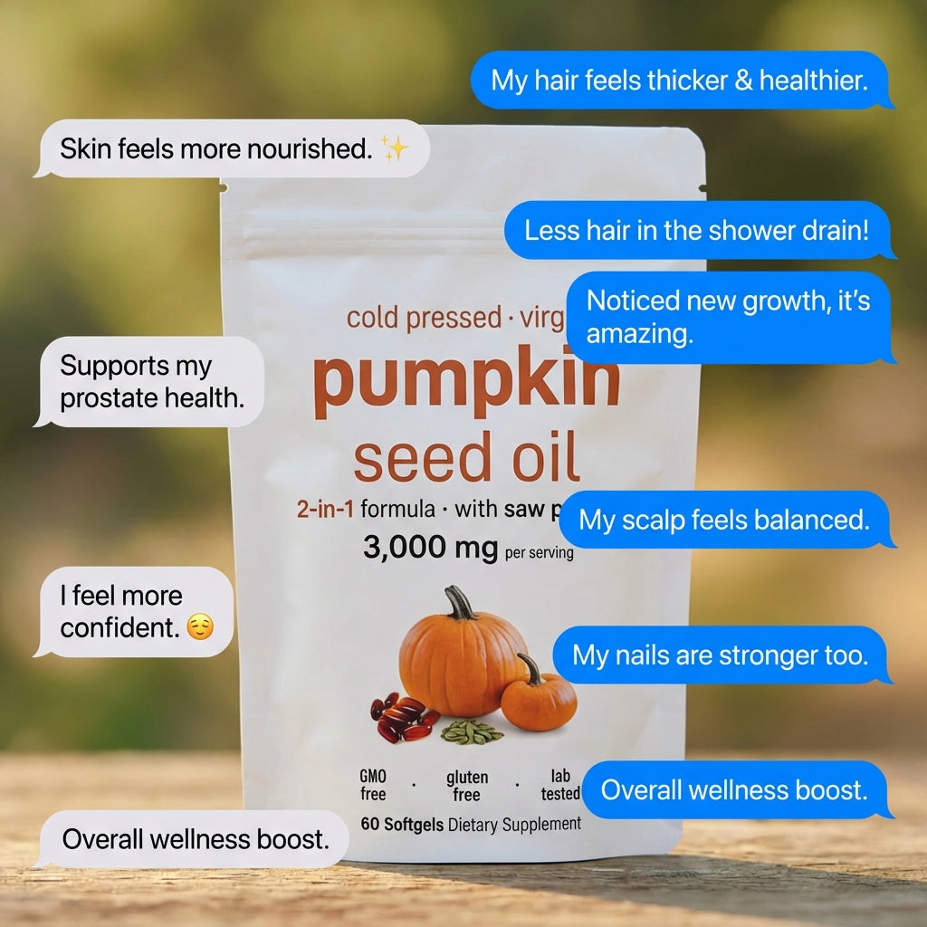 Lemeli Pumpkin Seed Oil is designed to correct the imbalance driving these changes, not mask them. Pumpkin Seed Oil directly influences bladder function, hair cycles, and hormonal balance, which is why it has been used for generations.